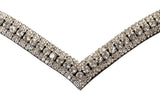 Flot Equitec pandebånd med 5 rækker krystaller i fleksibel V-form. Pandebåndet passer til Comfort Lux Nakkerem og Comfort Lux Næsebånd.