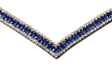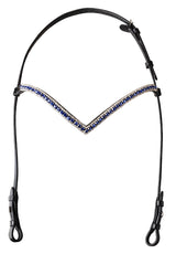 Eksklusivt sort læder nakkestykke i udsøgt kvalitet, Påsat et smukt Vpandbånd med blå sten.