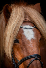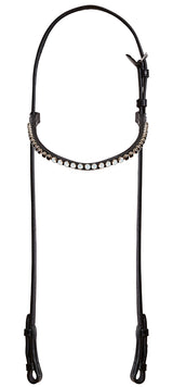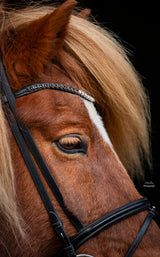 Få et nyt classic look med denne eksklusive læder nakkerem i udsøgt kvalitet, påsat smukt u-formet pandebånd med sorte og hvide sten.