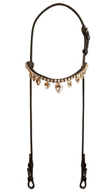 Lækkert sort læder nakkestykke med et smukt pandebånd med 9 dråbe formet hvide Krystaller.