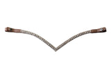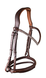 Flot brun lædertrense med smukt udsmykket v-pandebånd med klare krystaller og brunt tysk næserem til Islandske heste. Det lækre trykfordelende nakkestykke er foret med blødt læder for at beskytte din hest mest muligt.