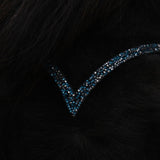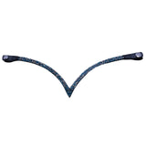 Smukt Equitec pandebånd med sorte og turkise små Sten i en dyb V-form, der passer til alle trenser i Equitec Comfort Lux serien.