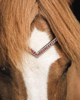 Smukt Equitec pandebånd med 3 rækker krystaller i V-form, der passer til alle trenser i Equitec Comfort Lux serien.