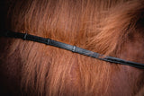 Tøjlen er lavet uden karabinhager for at give den blideste forbindelse til bidet uden forstyrrelser. Super soft tøjlen er sort 16mm bred og med stoppere.